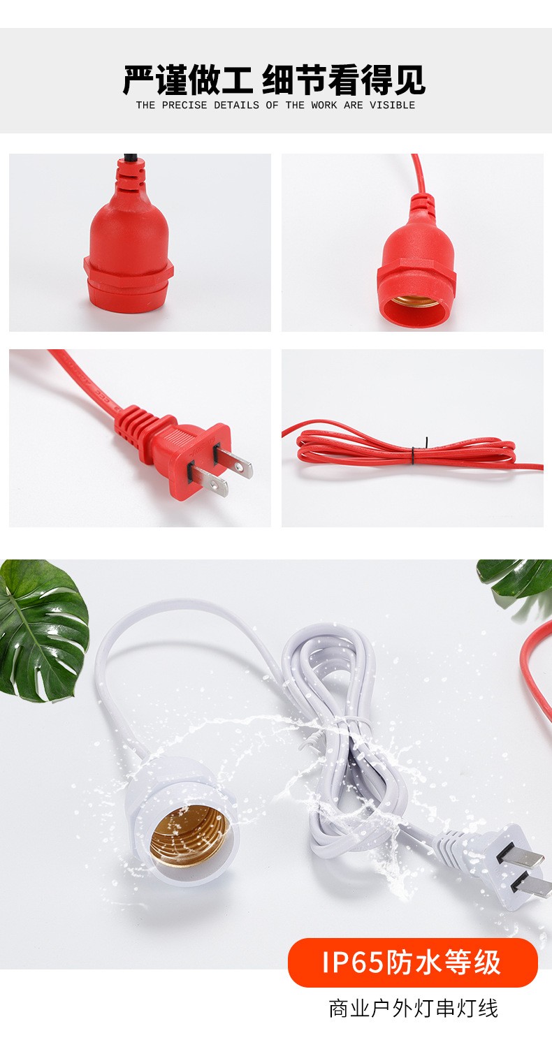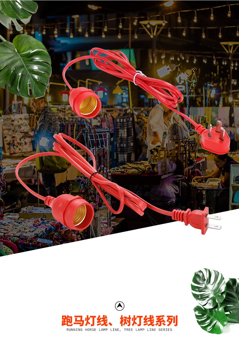 两脚插头灯头延长线生鲜灯悬挂吊式全铜防水E27螺口LED灯节