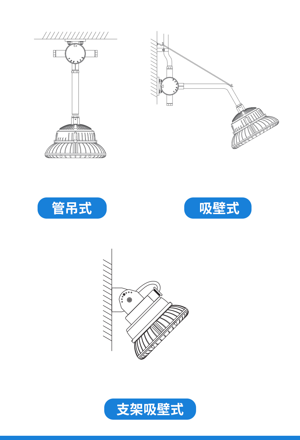 • 安装方式 吸顶式、支架式、悬吊式、壁面式、立式