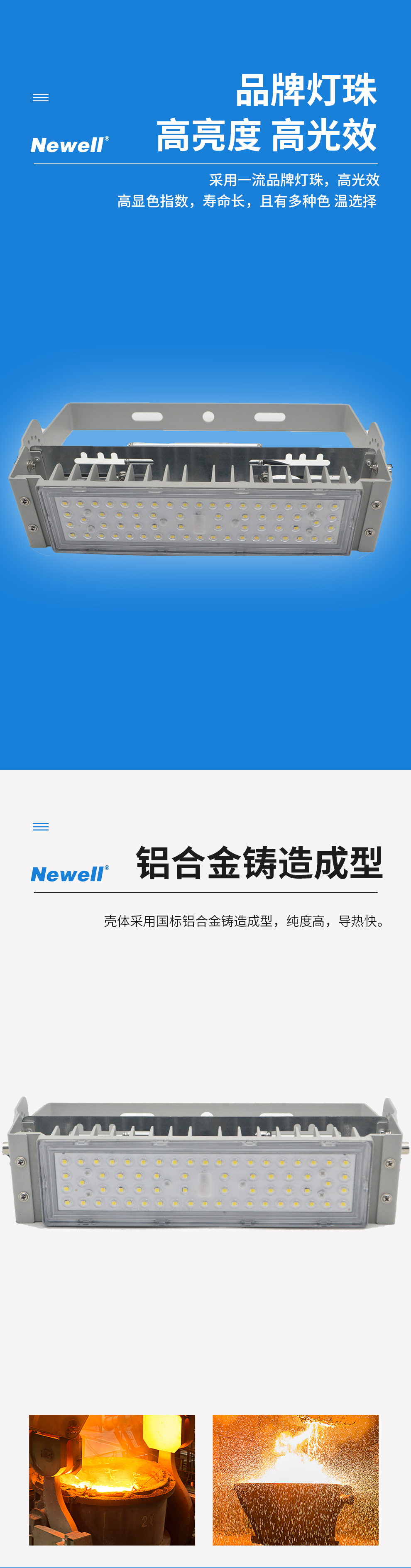 广东纽厄尔光电科技有限公司是一家专业的工业照明方案提供商。主要从事防爆灯具、工矿灯具、道路灯具、隧道灯具、地铁轻轨灯具及相关智能控制系统的研发、生产与销售。公司位于粤港澳大湾区核心区域-广东佛山,公司位于粤港澳大湾区核心区域-广东佛山,佛山是国家重点制造基地,同时也是目前国家唯一的制造业转型升级综合改革试点城市,拥有世界最前沿的光电研发基地和世界最完善的灯具产业链及供应链体系,拥有世界最现代的物流服务体系。公司通过了ISO9001质量体系认证、IS014001环境体系认证和OHSAS18001职业健康安全管理体系认证,同时获得CCC认证、节能认证以及CE、Atex、IECEX国际质量标准认证。产品广泛应用于石油、化工、冶金、电力、制造、场馆、广场、码头、道路、隧道、轨道交通等众多领域,并获得用户一致好评。同时作为国内多家知名灯具企业的OEM商,在业内享有较高声誉。公司先后荣获国家高新技术企业、广东省著名品牌、中国最具影响力灯具品牌、绿色节能环保产品、工程建设推荐产品、资信等级AAA企业、质量服务诚信AAA企业、诚信经营示范单位AAA企业、重合同守信用AAA企业等多项荣誉。公司产品遍布全国32个省、市、自治区,同时产品远销欧洲、非洲、中东、东南亚等多个国家。公司设立了华中、华北、华南、西南、海外五大运营中心,并配备优秀的运营团队,在相关的业务领域持续耕耘。同时在中国重庆、中国佛山创建了工业照明展示体验交流中心,为客户提供设计新颖、技术领先、品种齐全的工业照明产品场景展示,让客户能身临其境感受纽厄尔光电所提供的工业照明解决方案。纽厄尔光电本着“专业、专注、精益求精”的品牌精神,持续弘扬“艰苦奋斗、至诚守信、开拓创新、合作共赢”的理念,努力用光彩演绎世界。