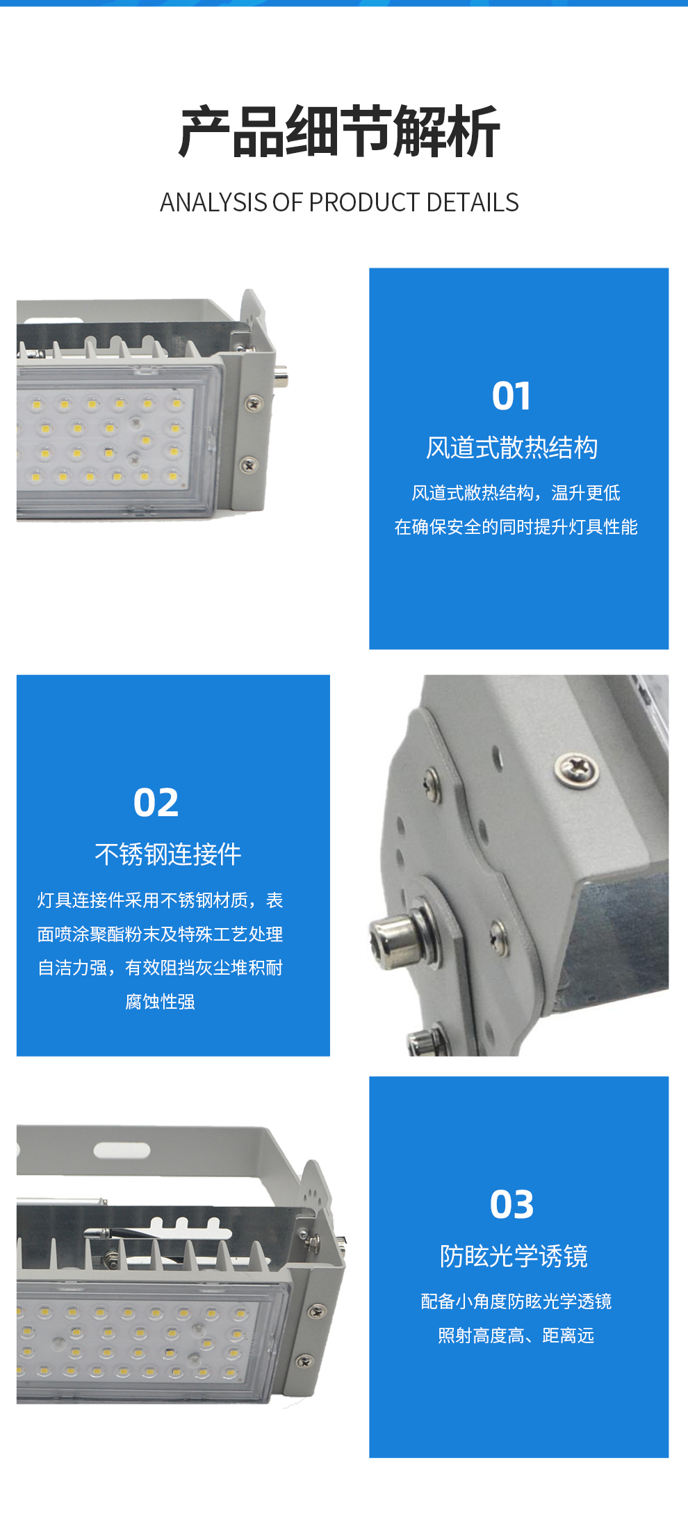 • 可调性 水平旋转、垂直俯仰、出光方向调节、高度调整、亮度调节