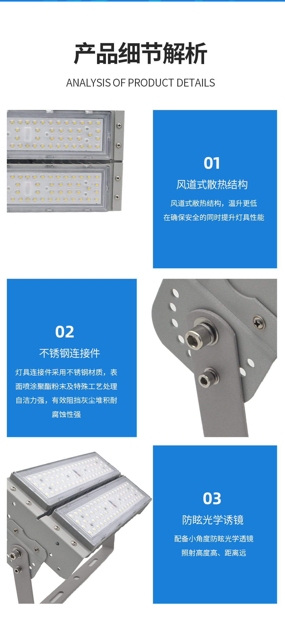 • 可调性 水平旋转、垂直俯仰、出光方向调节、高度调整、亮度调节