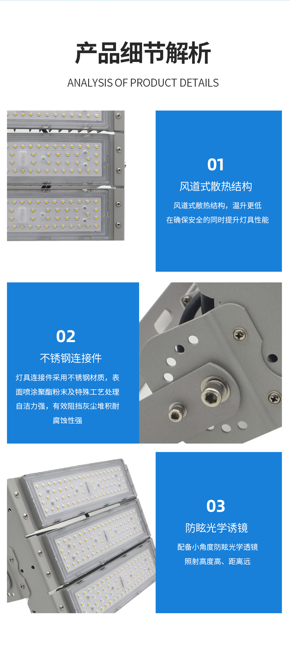 • 可调性 水平旋转、垂直俯仰、出光方向调节、高度调整、亮度调节