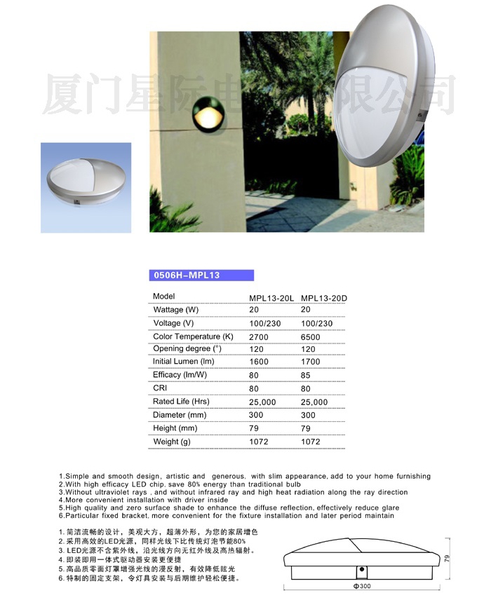 • 灯具直径(mm) Φ151-300mm