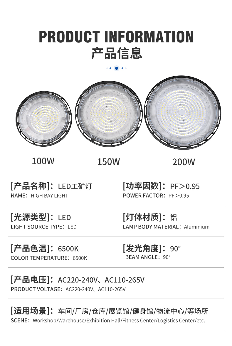 工业线性厂房灯高棚灯高光效工矿灯High Bay Light