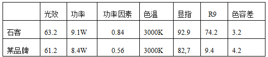 石客产品与国内某知名灯具品牌筒灯参数对比: