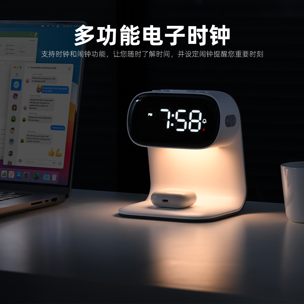 45pcs 2835 无线充台灯时钟显示七彩氛围灯USB输出