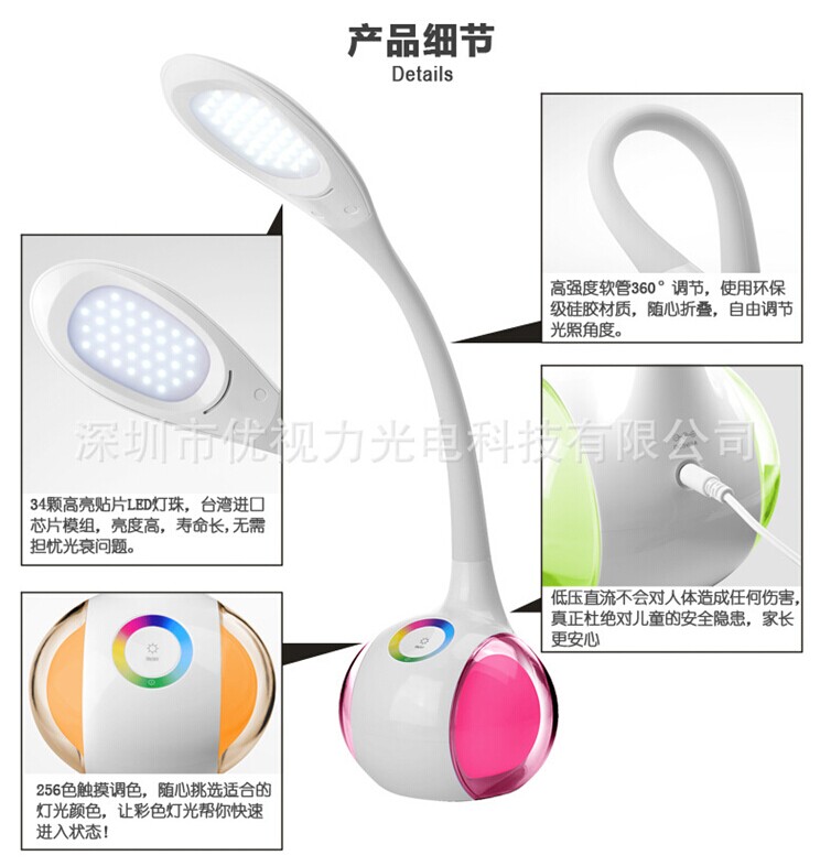 源头厂家创意LED护眼台灯触控调节七彩氛围家居宿舍两用学