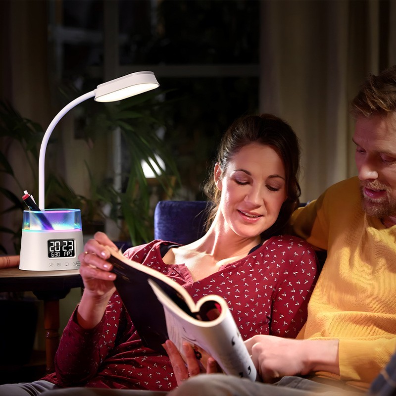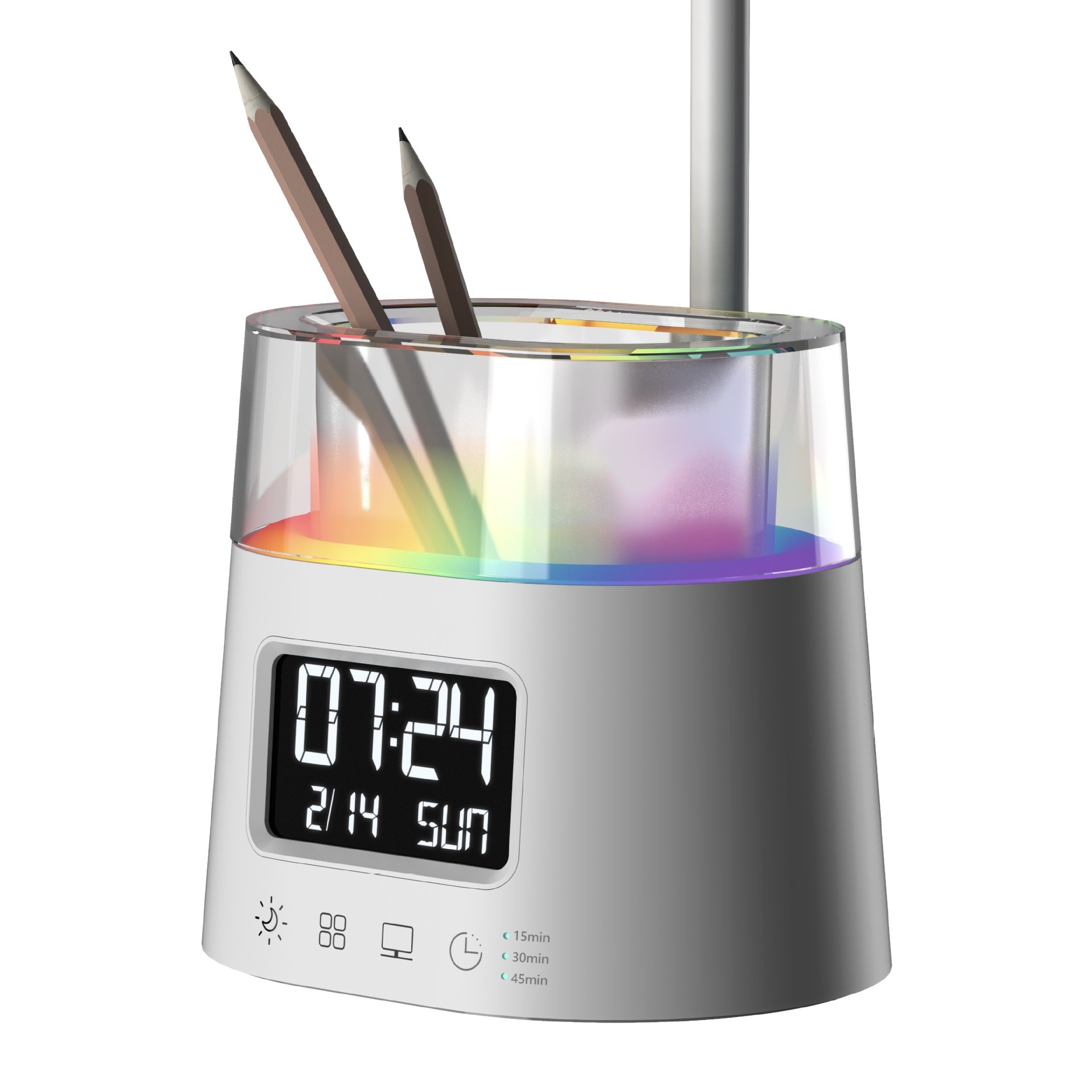 跨境畅销多功能氛围儿童学习灯时钟万年历RGB彩灯笔筒收纳
