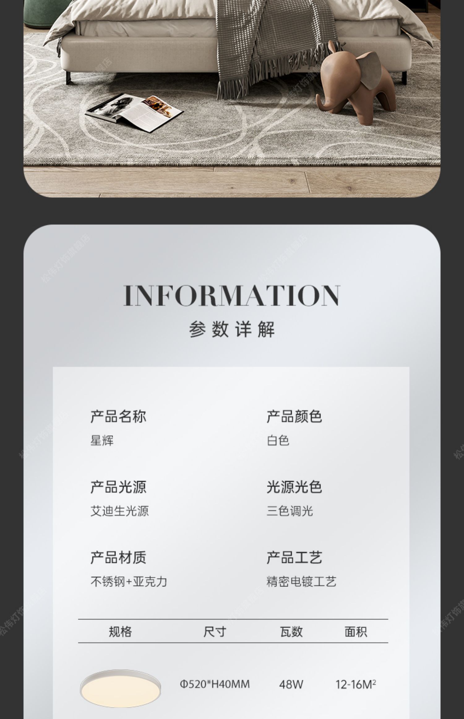 颜色分类:星辉XD-圆330mm(白) 星辉XD-圆420mm(白) 星辉XD-圆520mm(白)灯具是否带光源:是电压:111V~240V(含)