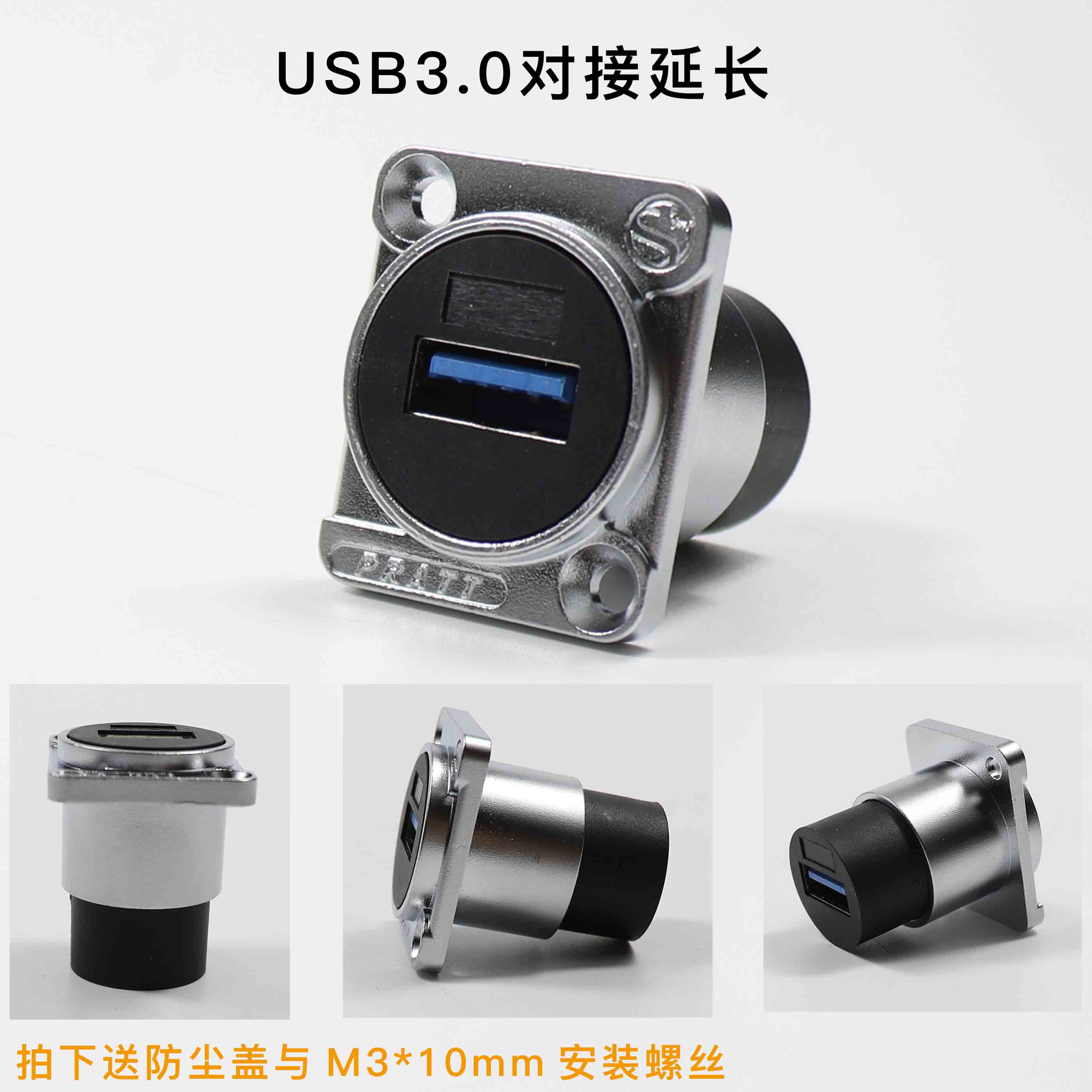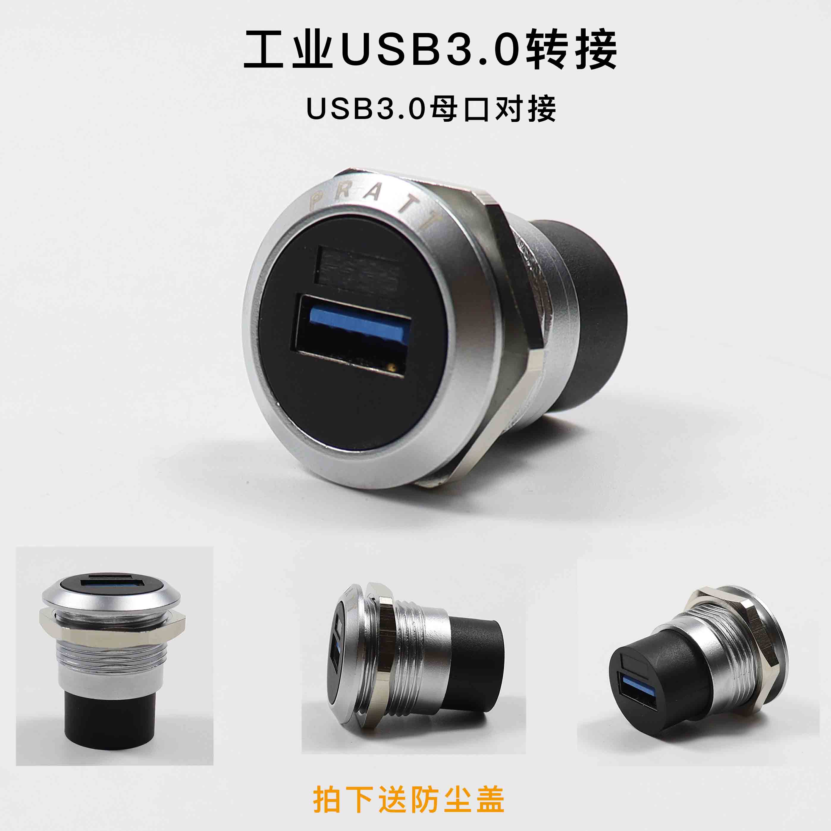 PRATT 工业USB3.0转接头USB双口对接插座