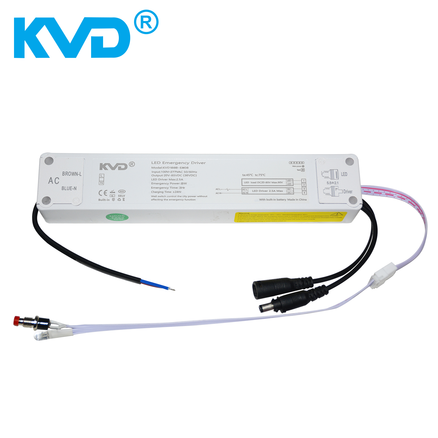 KVD188B-EM08应急电源匹配LED恒流驱动灯具、用于LED灯具常亮模式和应急模式相结合,也可以只做应急照明用。