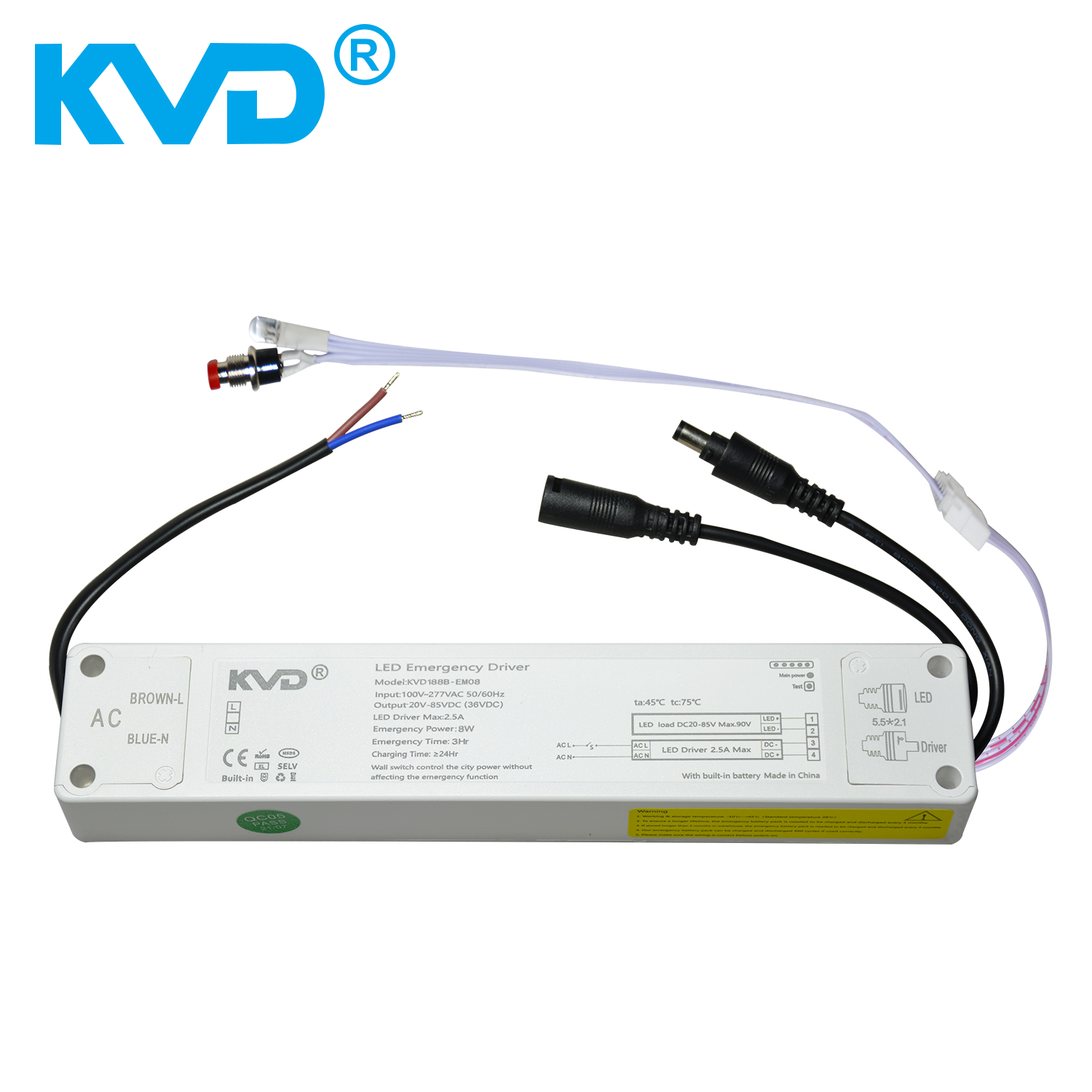 KVD188B-EM08应急电源匹配LED恒流驱动灯具、用于LED灯具常亮模式和应急模式相结合,也可以只做应急照明用。