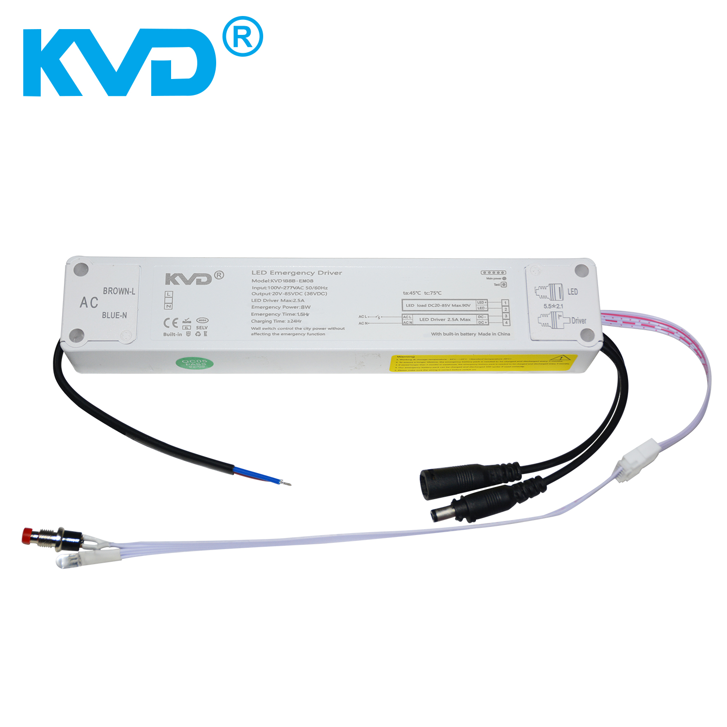 KVD188B-EM08应急电源匹配LED恒流驱动灯具、用于LED灯具常亮模式和应急模式相结合,也可以只做应急照明用。