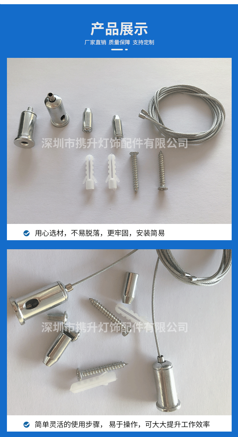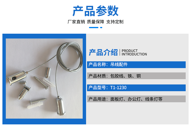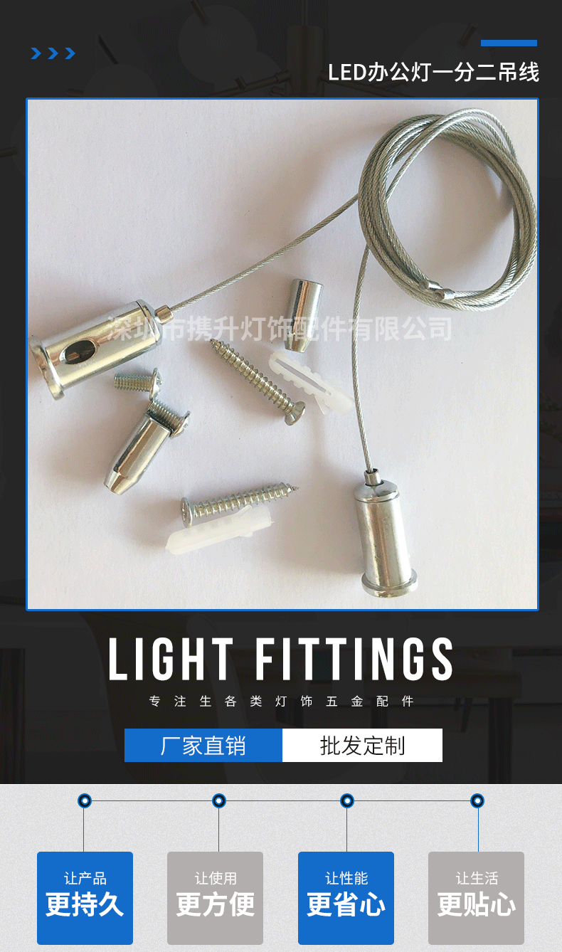 厂家直销灯饰吊线配件 面板灯绳钢丝绳吊线 钢丝绳配件锁线器