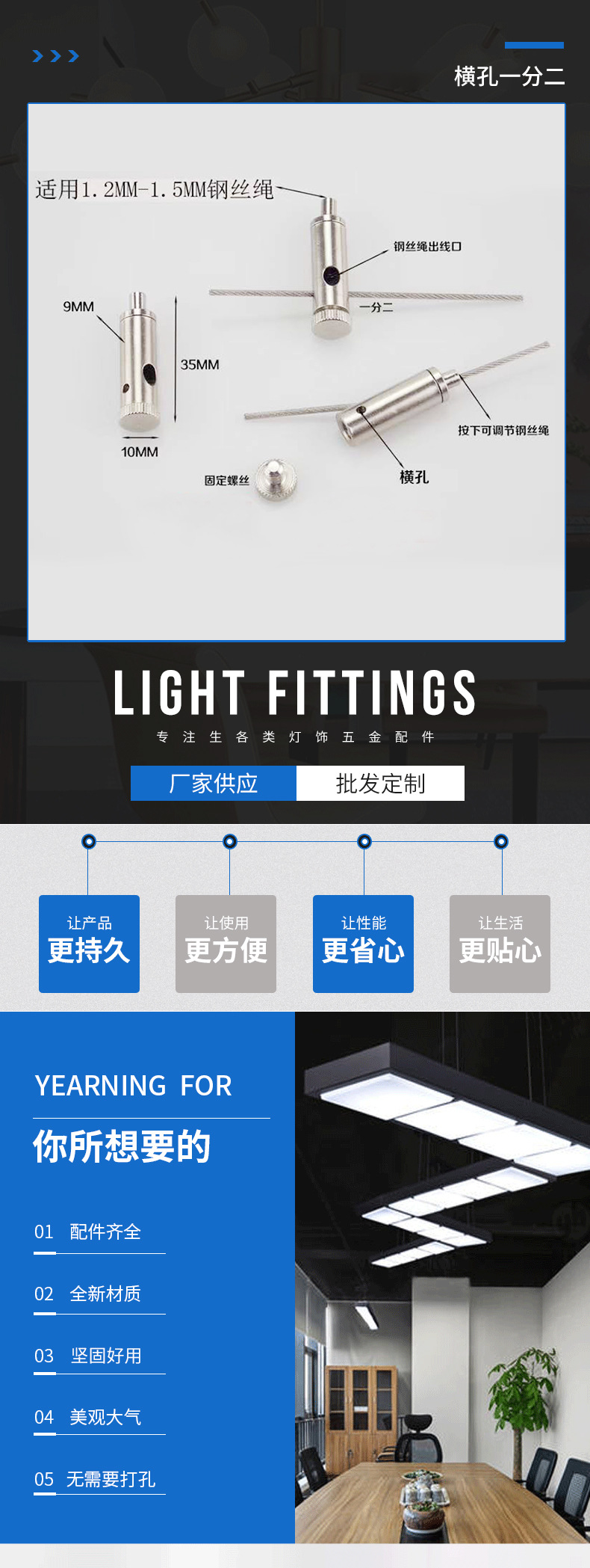 厂家批发横孔一分二 钢丝吊绳卡线器 一分二锁线器灯饰灯具配件