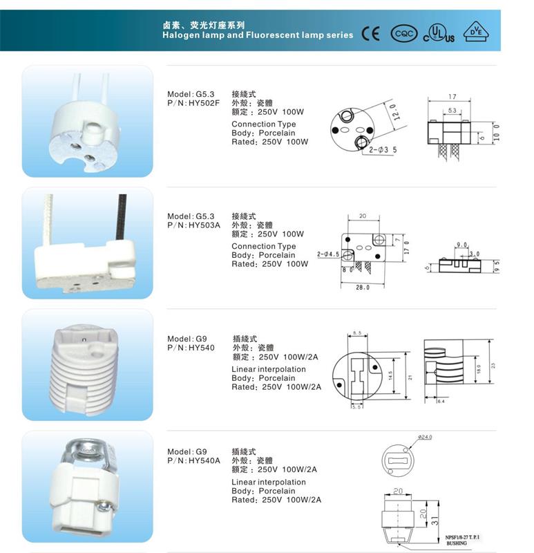 本公司成立于2002年,是一家专业生产陶瓷、电木、塑胶系列灯头灯座、电源线、电子线及其他灯饰配件的企业。工厂自设产品检测室及有效的品质控制管理。产品安规主要有CE/UL/CUL/VDE/CQC等。
