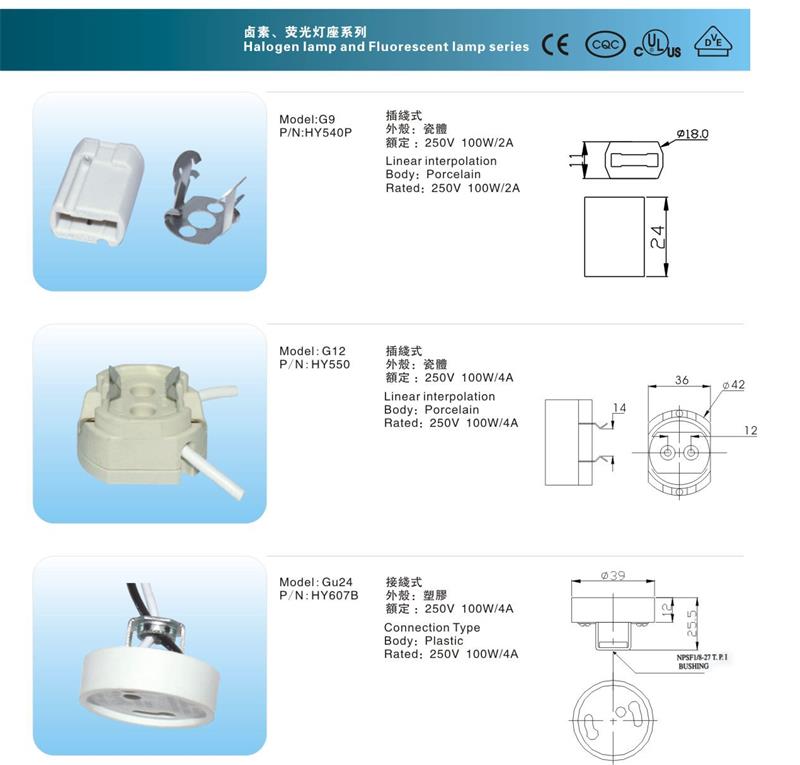 E27/E12卤素/荧光灯座/灯头/灯具配件