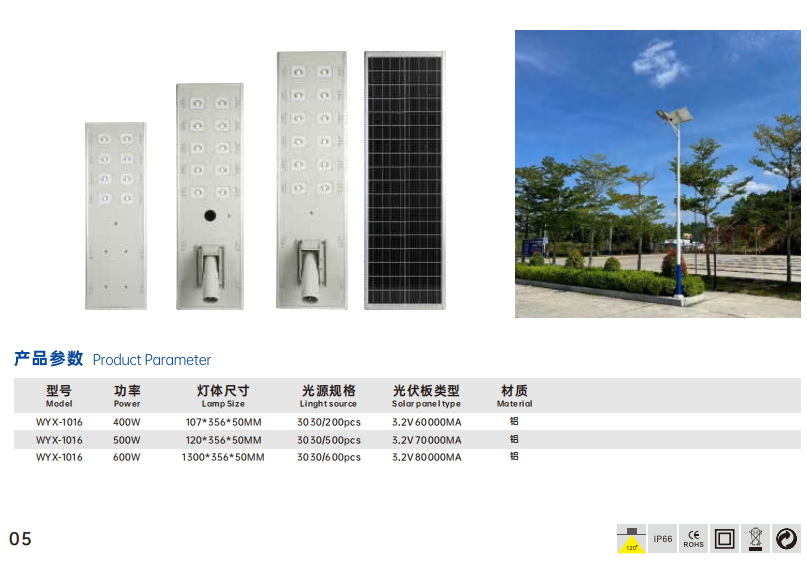 采用抗氧化外壳,硬度高,散热快 高品质太阳能板,弱光充电技术,光电转化率高 全新铁锂储能专用电池,雷达感应系统