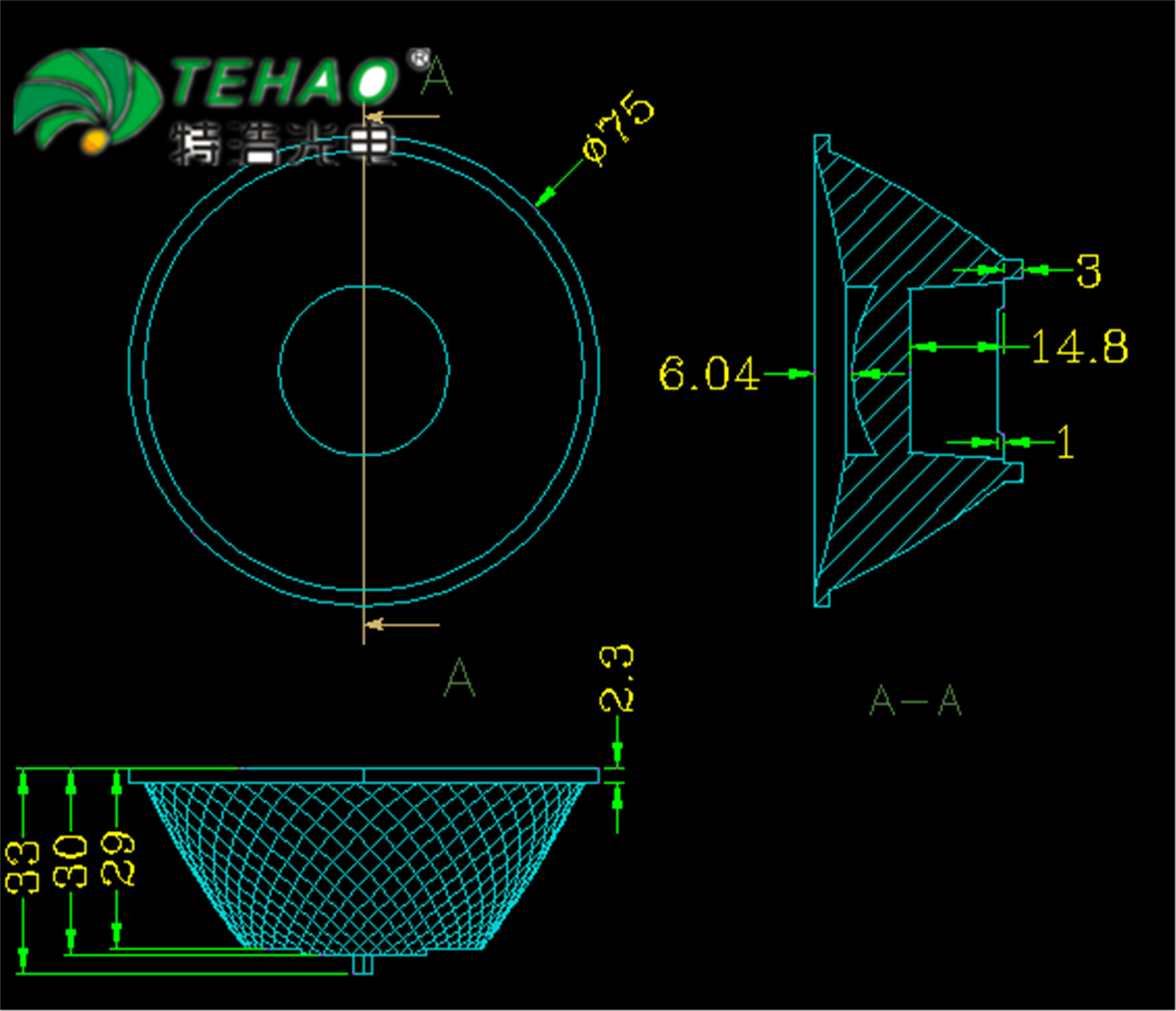 > 配套 > 零配件 > LED透镜 >COB透镜 75mm 15°24° 射灯 轨道灯 透镜TH-AAB12D-7529