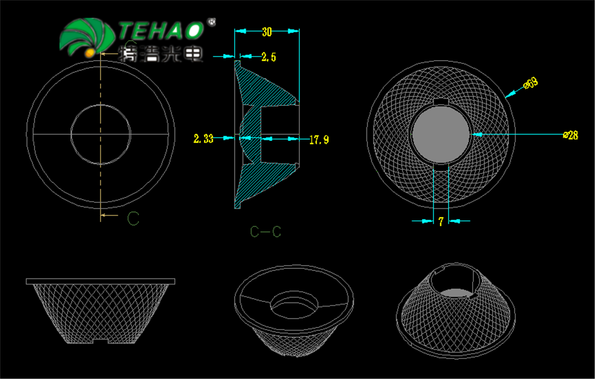 > 配套 > 零配件 > LED透镜 >厂家直供COB透镜 69mm 15°射灯 轨道灯 透镜TH-AAB15D-6932