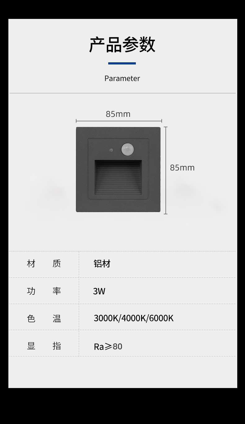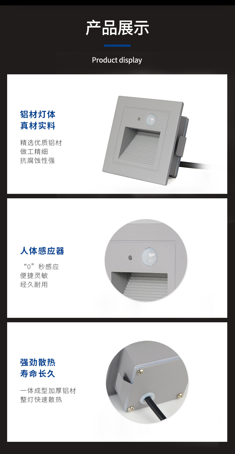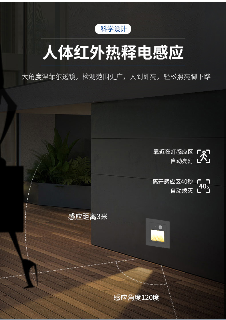 LED人体感应地脚灯户外 防水感应台阶灯嵌入式压铸铝材过道地