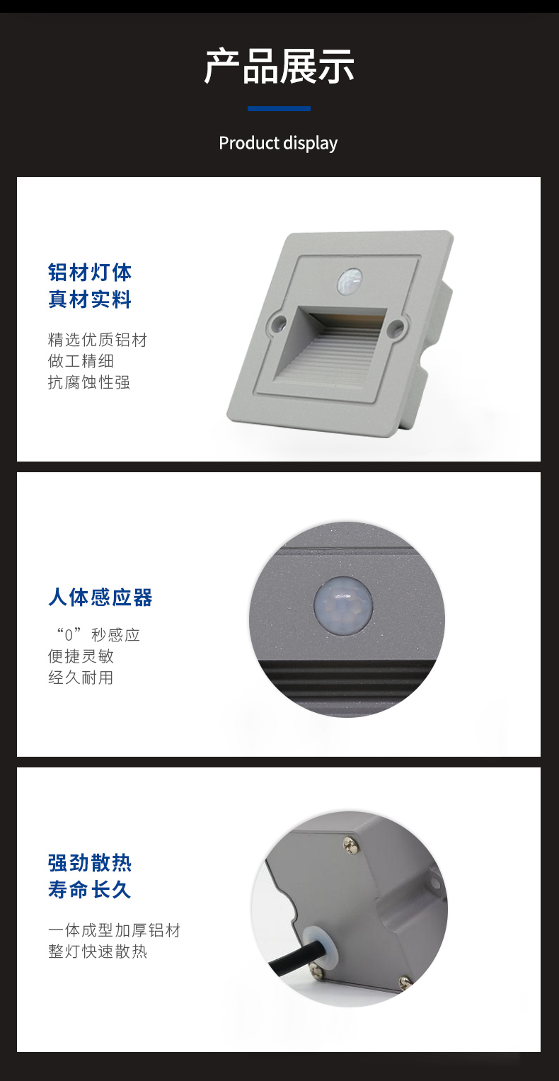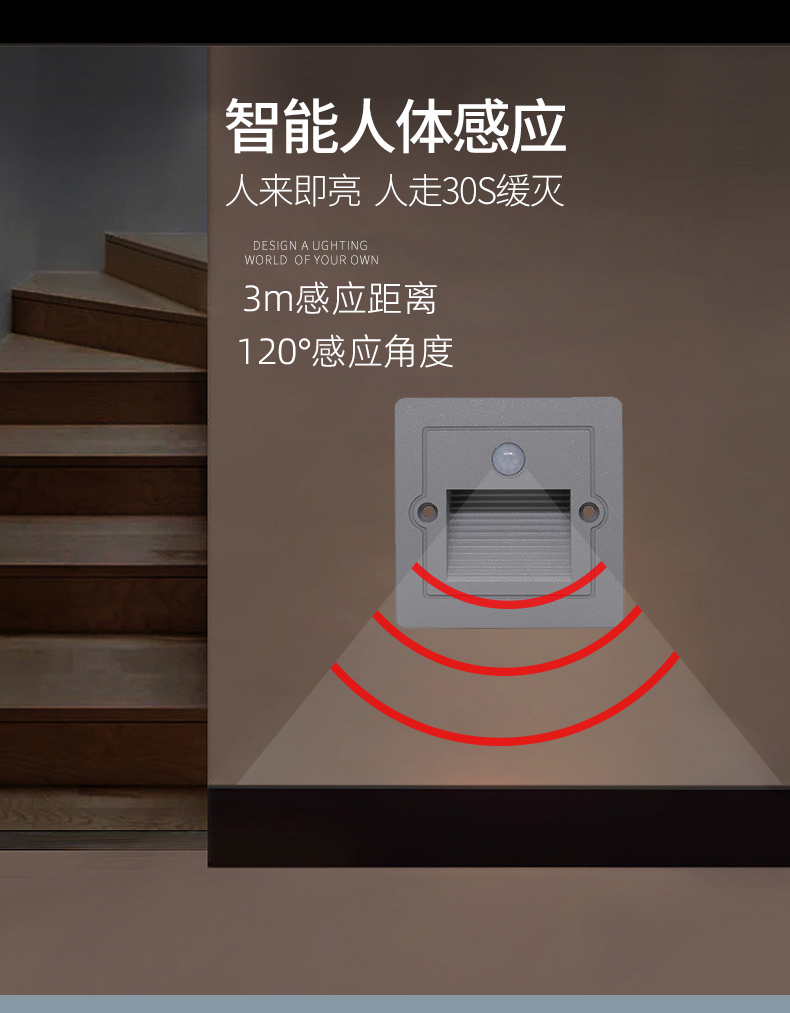 86嵌入式LED户外防雨人体感应地脚灯台阶灯过道铝材楼梯