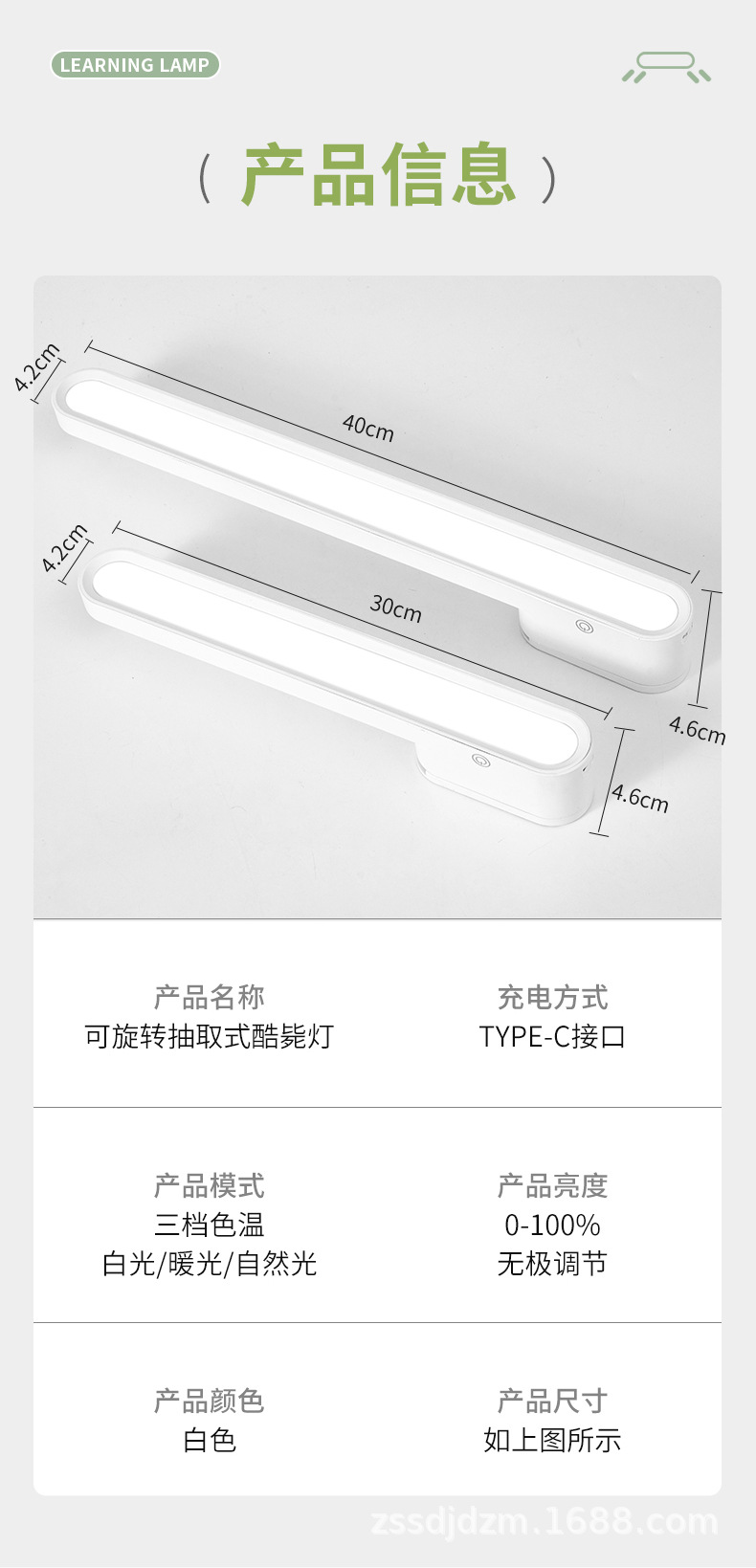 护眼学习灯酷毙灯抽拉式可旋转卧室床头书桌专用