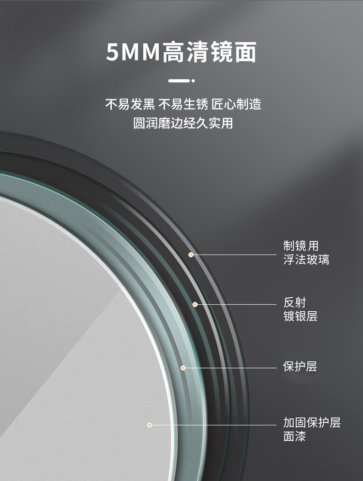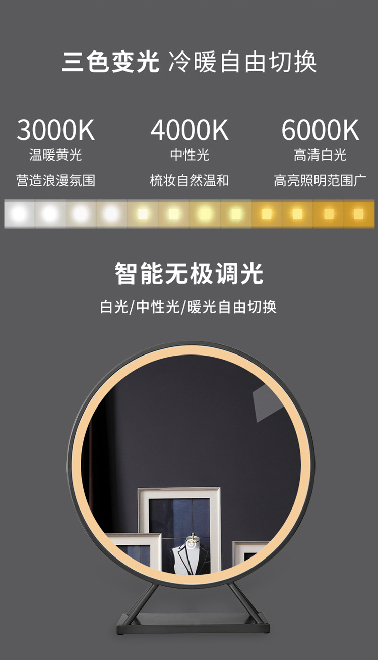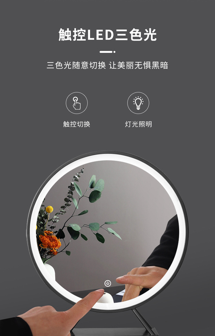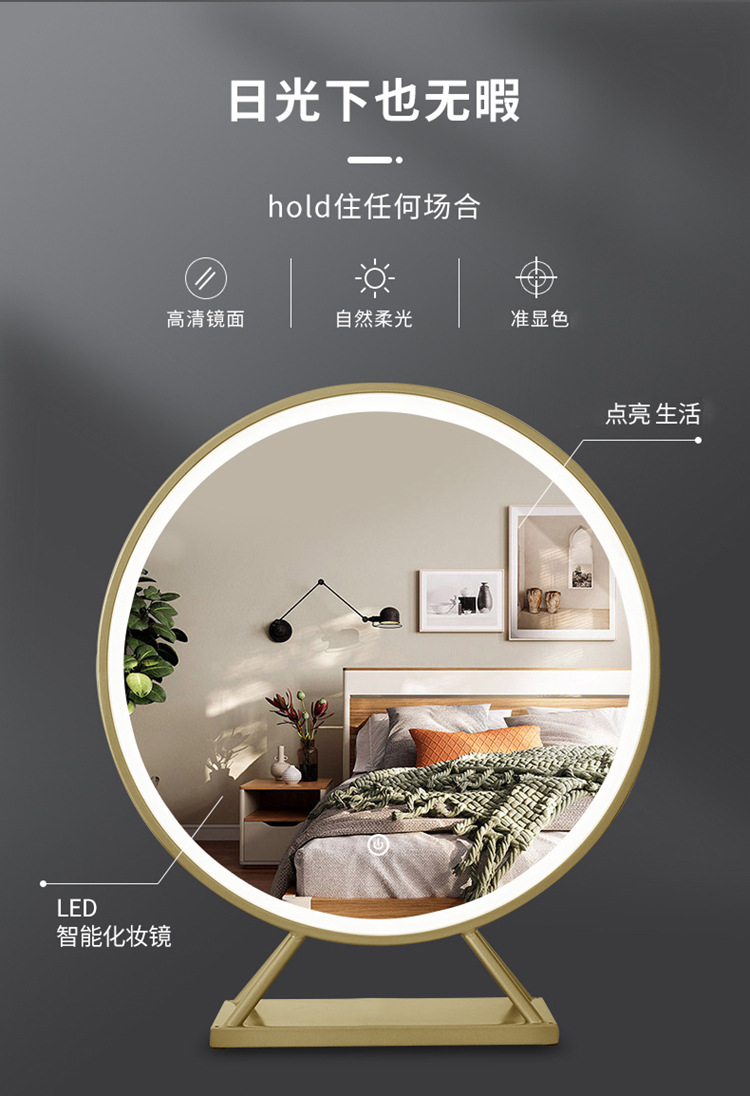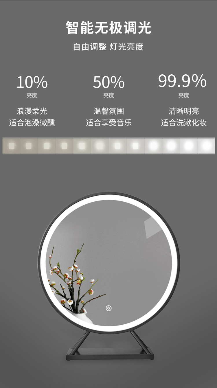 卫生间化妆镜 智能触摸屏带led灯壁挂圆梳妆镜