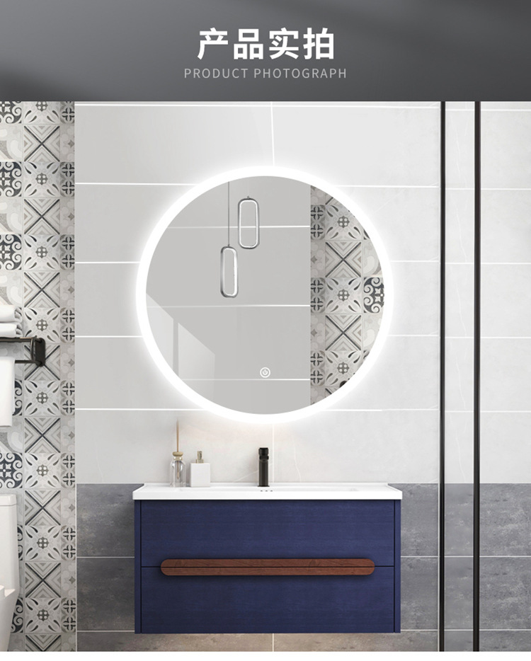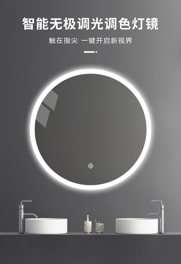 酒店家居卫生间浴室镜子 带触摸开关防雾时间卫浴智能灯镜圆镜