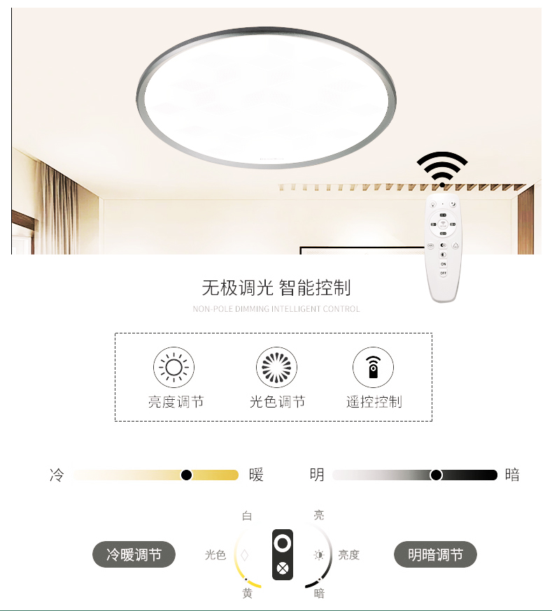 • 光源可调性 亮度调节、色温调节
