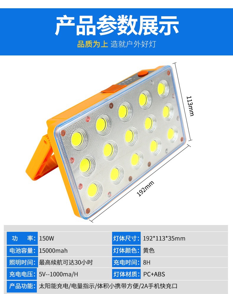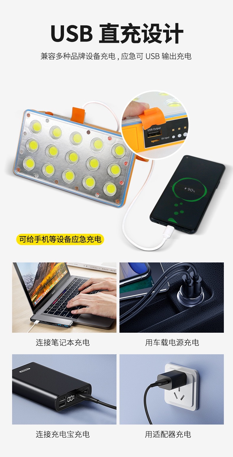 太阳能移动应急灯续航强便携式LED充电灯手机充电户外露营防雨
