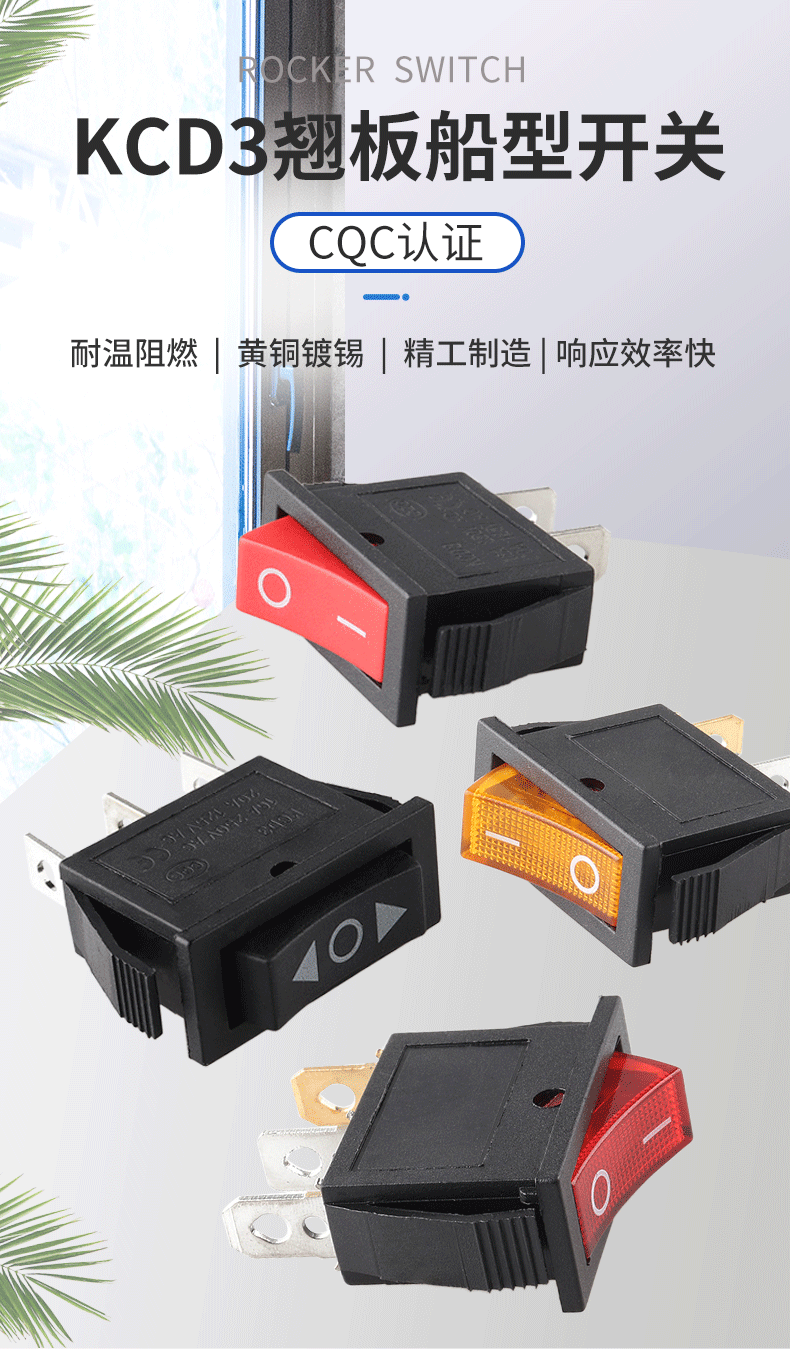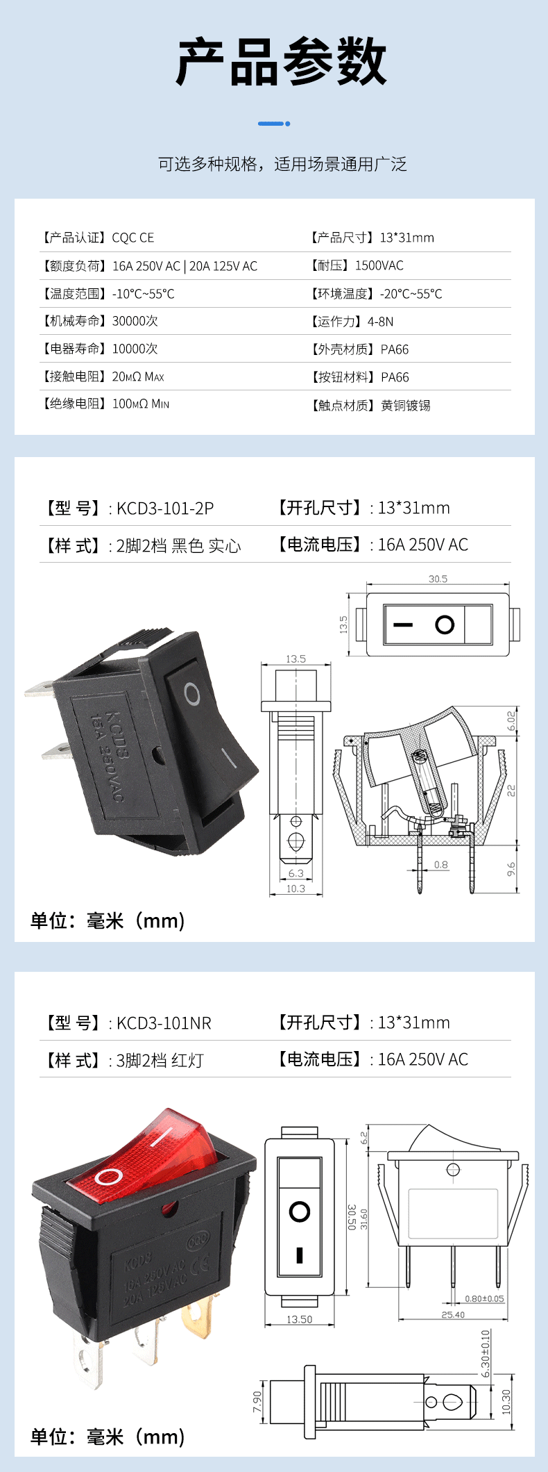 船型开关KCD3 16A 250V AC开孔13*31mm