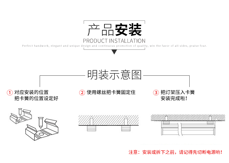 • 安装方式 嵌入式、暗槽式、悬吊式