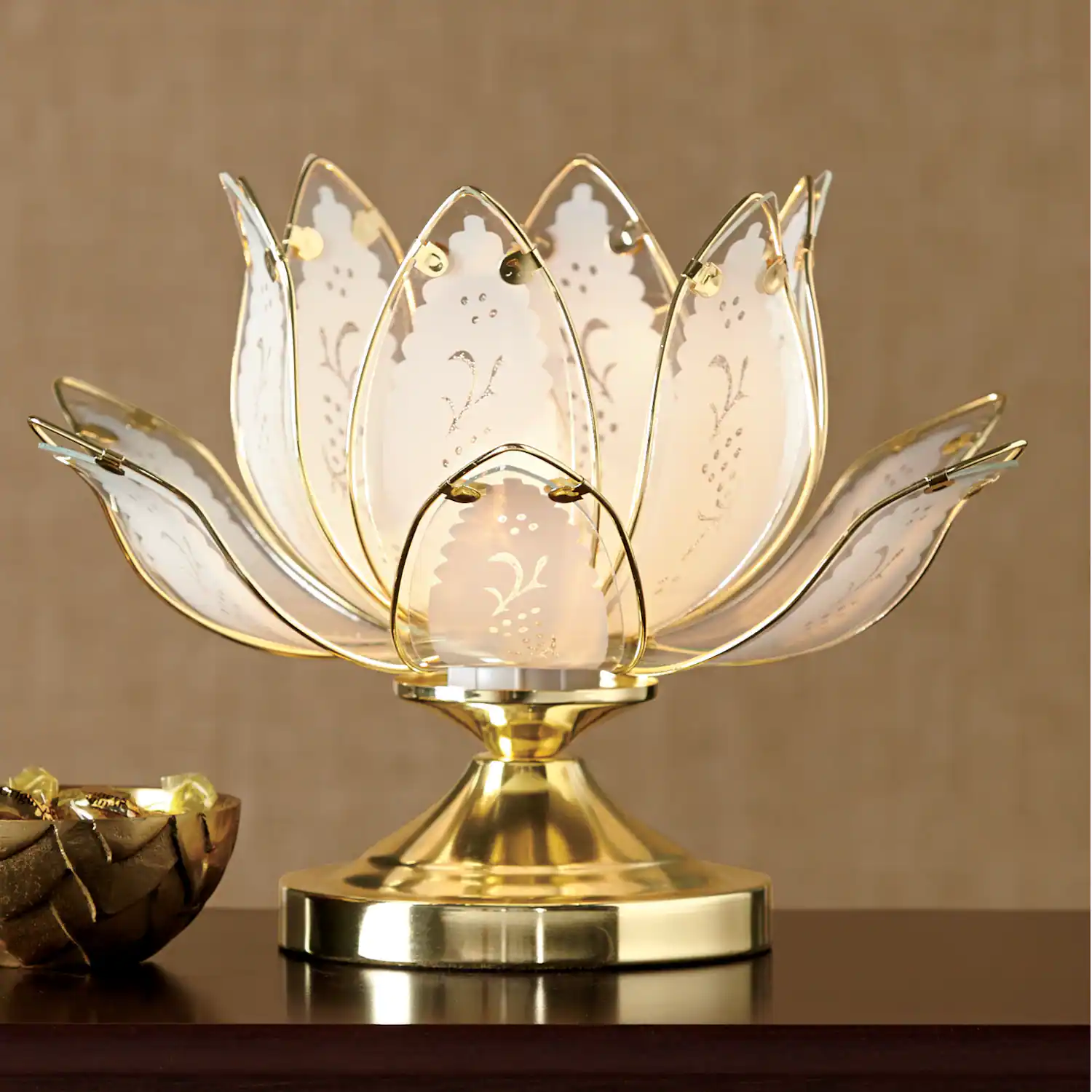 此款莲花台灯,主要设计理念来自盛开的莲花,当人们看到莲花打开花瓣,展现美丽,如此便可以将美不胜收的美景轻揽进自己家中,搭配触摸开关,光只需在任何地方接触即可打开。此灯尺寸为:W13.25"*H8.625"。文件上传成功!