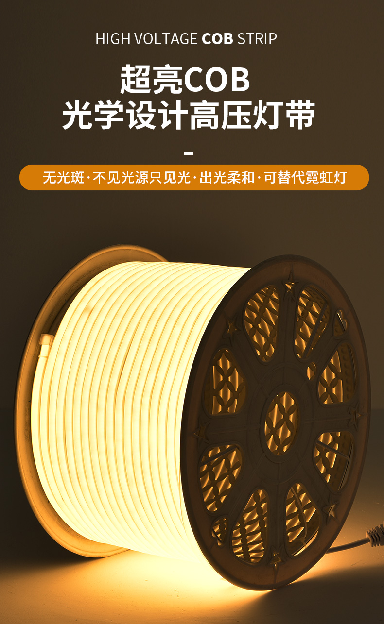 cob灯带led柔性110V吊顶硅胶灯条220v户外防水氛围