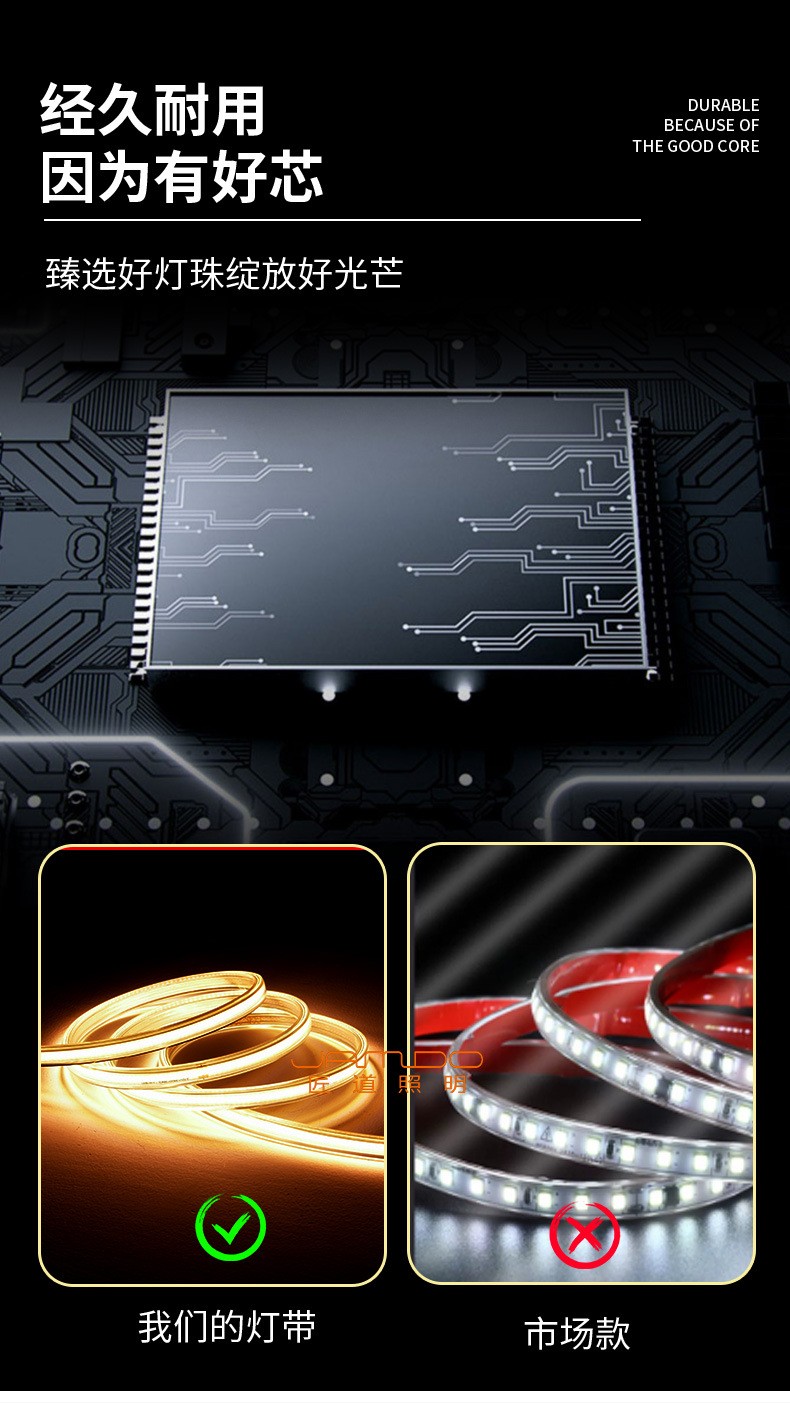 中山市有嘉智能科技有限公司是一家集研发,生产,销售于一体的高端COB 灯带专业制造商,产品涵盖LED高压灯带、低压灯带,公司以“匠心铸品质,服务赢未来”为核心经营理念,深耕LED照明领域近20载,致力于为全球客户提供高稳定性,高光效,长寿命的COB灯带产品及一站式照明解决方案。以科技赋能品质,聚焦cob核心技术,打造卓越产品为核心,以客户需求为导向,超越期待为服务之本!有嘉始终以“用光创造价值“为使命,坚持创新驱动与可持续发展,未来将持续加大研发投入,深化智能制造布局,推动COB技术向更节能,更能智能,更人性化的方向演进,我们期待与全球伙伴携手,点亮品质空间,共筑光环境新生态! 有嘉智能---让每一束光,都承载信任和温度! 有嘉品质---严苛品控,铸就每一米的信赖!