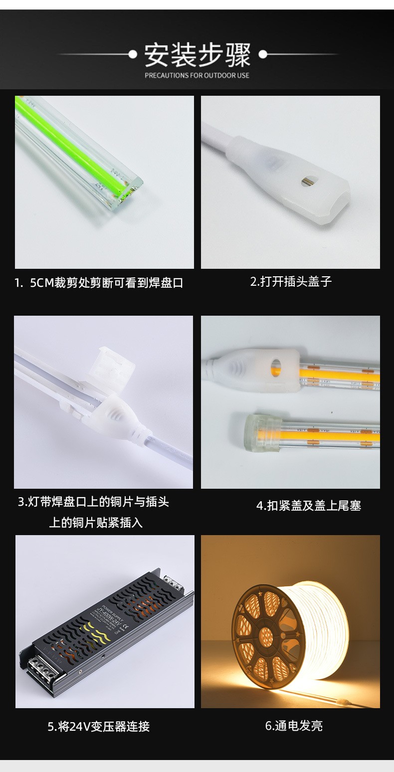 超亮cob低压led灯带室内户外招牌防水吊顶24v高亮软灯条