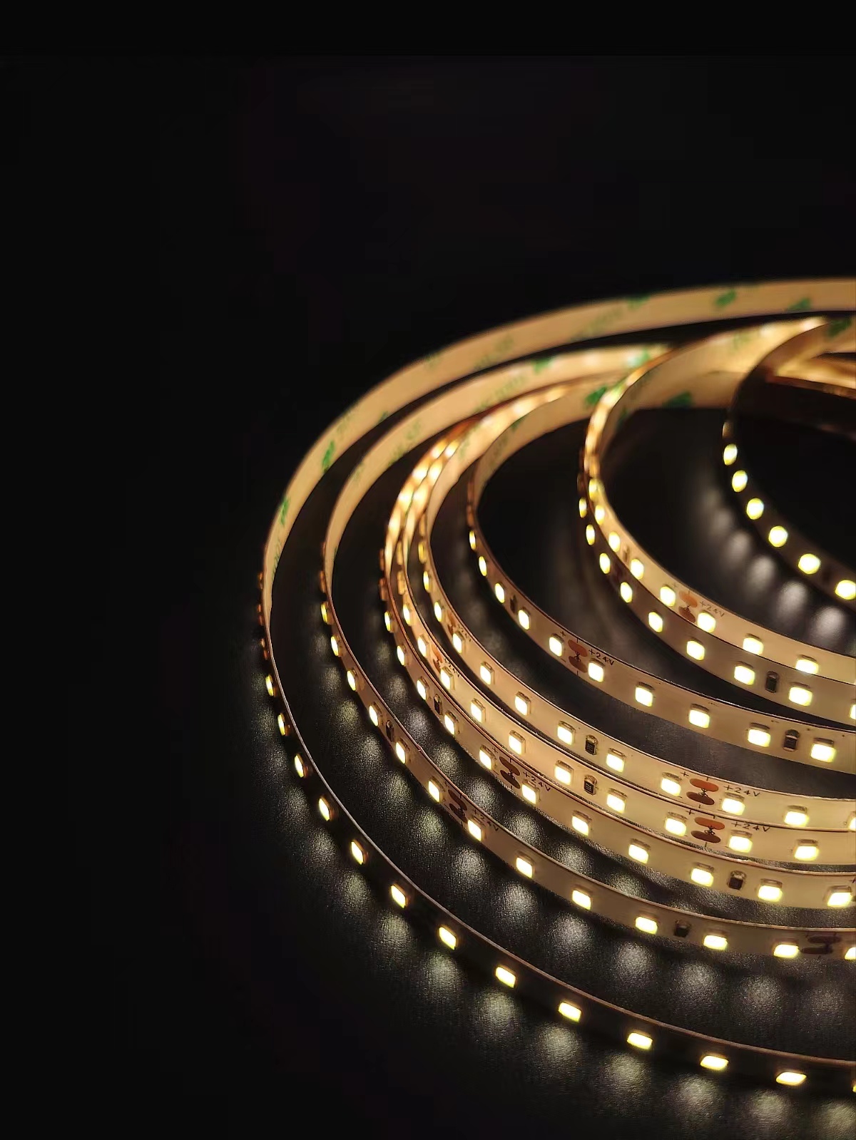 自定义灯珠,三安芯片,色温长年一致。25/50铜高温双面线路板,无铅锡膏,3M双面胶(300 LSE),紫铜国标电线。12V电压,90显指,120灯,12W/米,1050Lm/米,5米/卷。