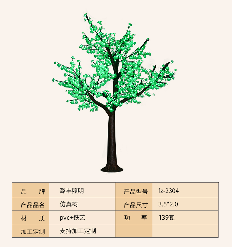 中山市潞丰照明科技有限公司是一家专业从事LED景观树灯、第三代新型仿真树灯的生产制造企业,产品工艺精雕细琢,远销东南亚、欧美等地。工厂成立于2009年,现厂区占地面积五千平方米,配置了先进的机器设备,并拥有大批高素质的LED景观树灯生产员工及开发人才,这也是我们产品质量的有力保证和依据。公司成立至今一直秉承创新,时尚的设计理念,配以先进的技术,卓越的品质立足于景观照明行业,以优质的服务,高效的品质求发展,不断开拓创新,缔造出高品位,高质量的产品服务于广大客户。潞丰照明一直以“质量是生命,诚信是血液”为宗旨,秉承采选优质材料,严把制造工艺,确保产品质量的理念,不断开拓,创新,更加诚信,务实。从而使我司的产品在激烈的市场竞争中,由价格到款式到质量到市场都极具产品竞争力和市场发展潜力。潞丰本着“和谐,创新,专注,责任”的服务理念,用真诚和实际行动让广大新老客户感受到:品质放心,因为潞丰!