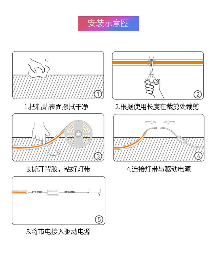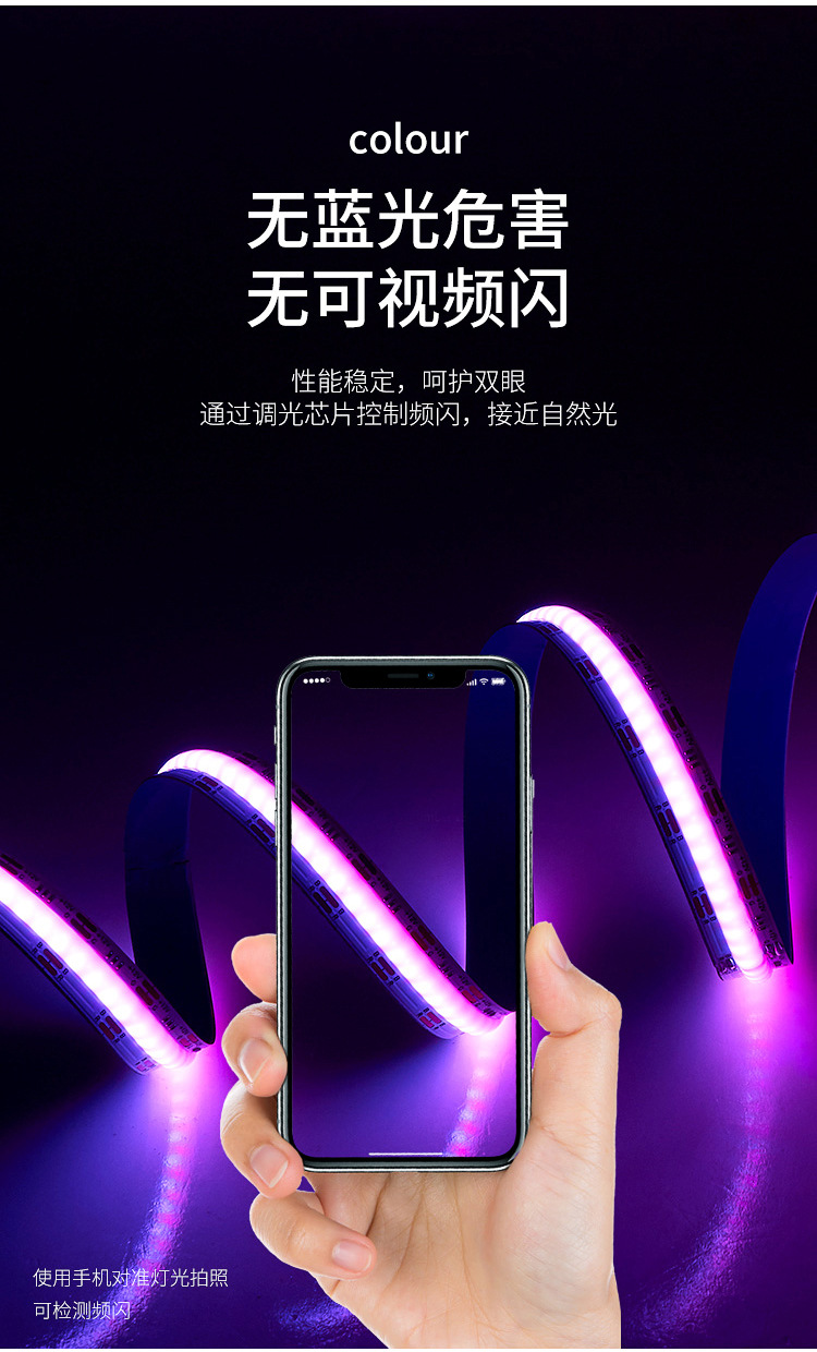 COB灯带低压七彩灯柔性软灯条超薄吊顶装饰超亮24v智能变色