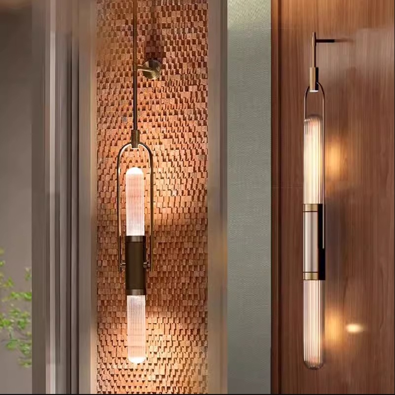 现代简约轻奢长杆壁灯别墅客厅酒店大堂前台背景墙上下发光灯