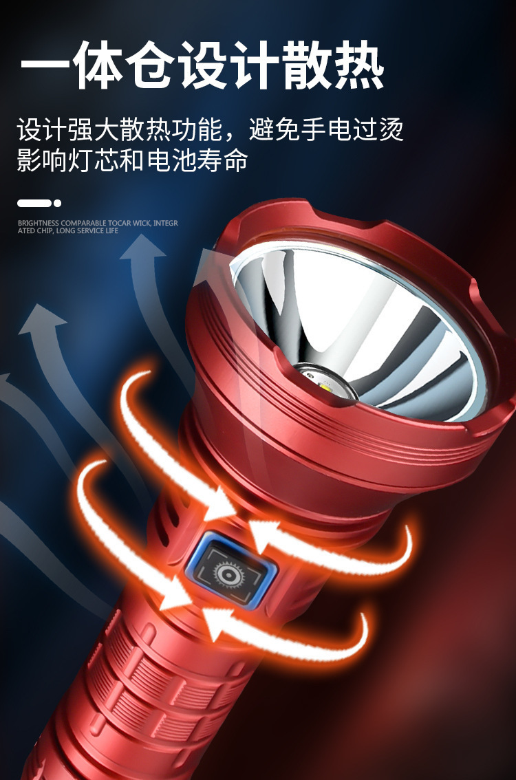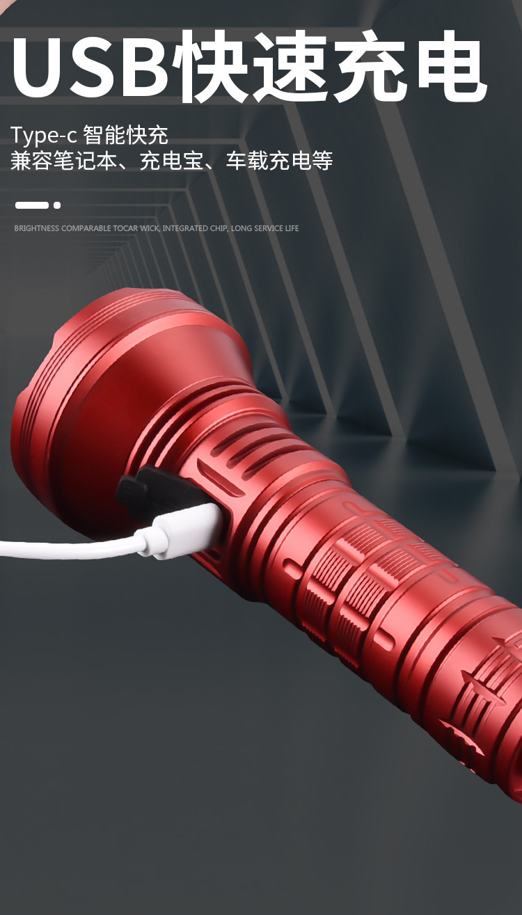 新款充电强光手电筒26650电池定焦户外远射骑行野营手电