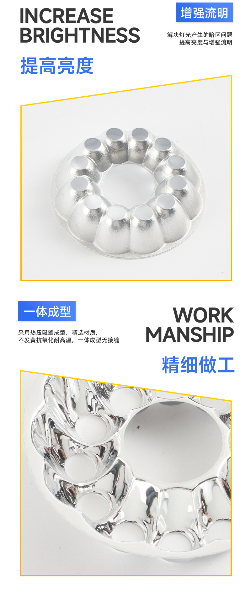 手电筒反光杯PC电镀银色纳米反光罩电镀手电筒反光杯定制