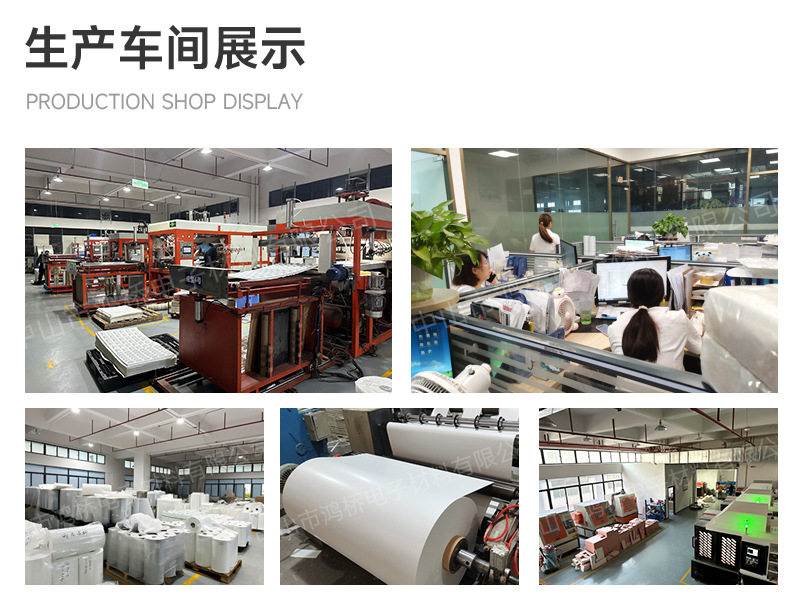 鸿桥公司成立于2010年,是一家专业从事LED光学薄膜,显示屏背光源模组专用薄膜,反射扩散绝缘阻燃材料定制服务为一体的综合性高新技术科技企业,公司与国内外知名企业,研究所等单位均有合作;拥有专业模切、热压、吸塑、硫化、激、折弯等高精密机械设备及完整的流程生产体系与专业的技术研发工程团队。对多种材料的结构与特性处理均有丰富的生产经验。公司拥有模切事业部与光电薄膜材料研发及阻燃绝缘材料生产部三大生产线,其产品广泛应用于灯饰照明行业如超薄灯箱、户外广告灯箱、平板吸顶灯、投光灯、筒灯、舞台灯等。背光源模组系列运用于LED液晶显示屏、精密仪器显示面板、手机导航仪、笔记本电脑、及各种电子显示设备。阻燃绝缘系列运用于新能源汽车、电源、通讯产品、数码相机、电脑、打印机、音响产品、家用电器、空调、灯饰、玩具等行业。我们秉承“精确·可靠·专业”的生产精神和服务理念,凭借着先进的技术、卓越的品质、完善的服务,坚持技术创新,狠抓质量管理,不断提高服务水平,与国内外许多大型灯饰照明、家电行业建立良好的合作关系!我们诚挚欢迎国内外客户来我司考察指导参观,以及进行促进性的技术交流。