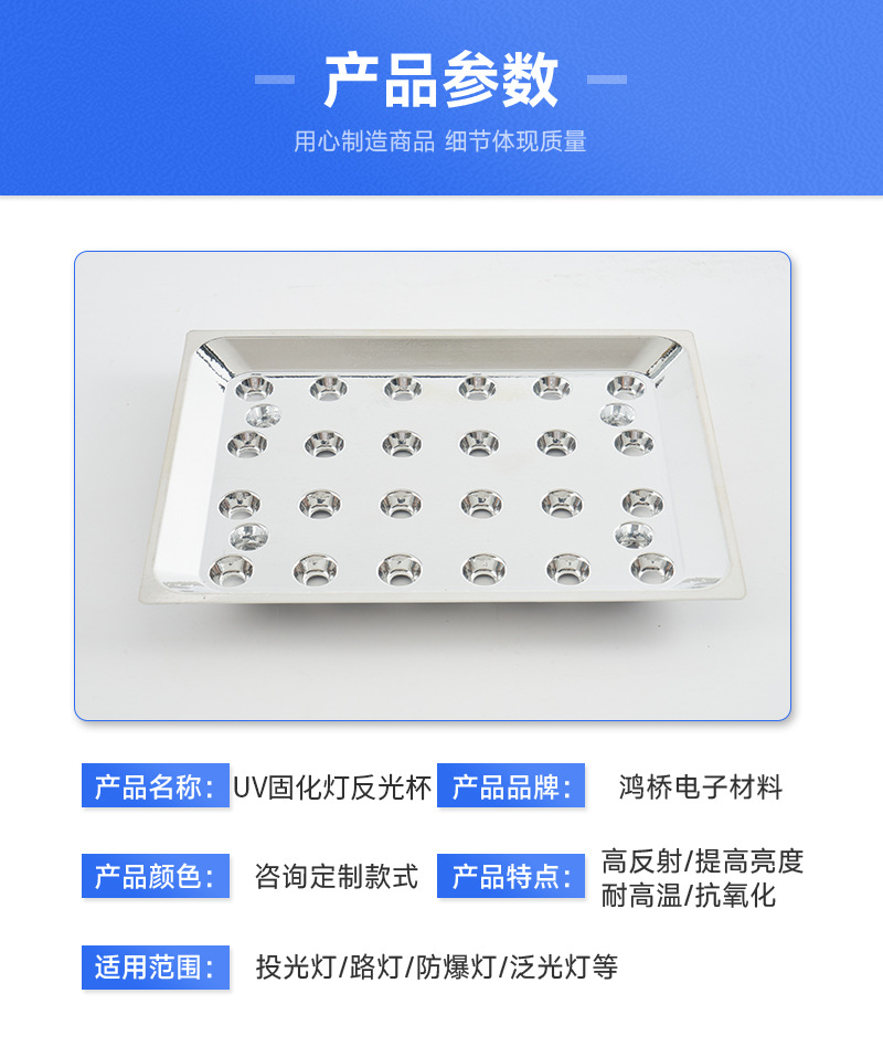 UV固化灯反光杯投光灯工矿灯PC纳米反光杯电镀方形反光杯