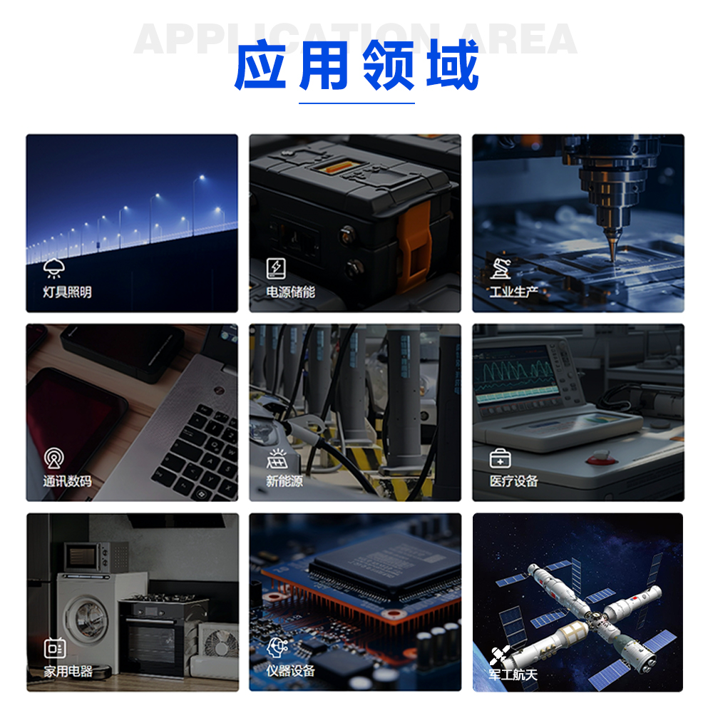 行业应用场景全覆盖:产品被广泛应用于照明灯具、电源储能、厨具家电、消费电子、医疗保健、通讯数码、仪器仪表、工业控制、新能源、航空航天、人工智能等诸多领域,服务于全球30多个国家与地区。