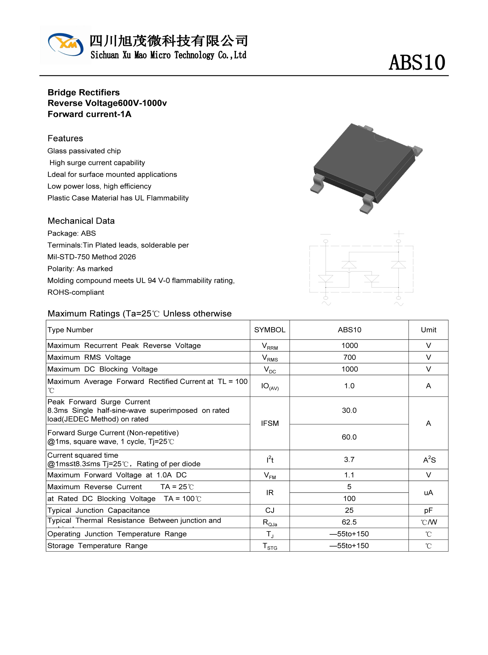 旭茂微ABS10贴片整流桥 ABS封装扁桥桥堆