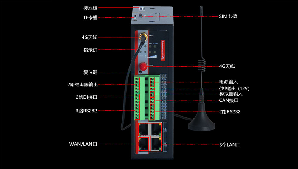 1个WAN口,3个10/100M以太网口(RJ45插座);自适应MDI/MDIX,内置1.5KV电磁隔离保护