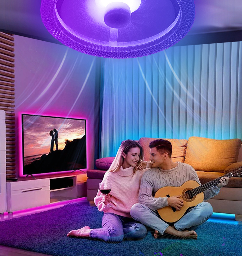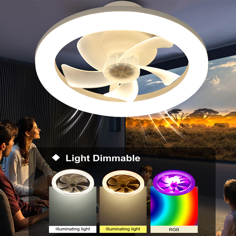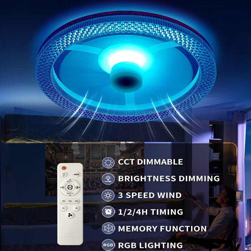 新款卧室家用氛围RGB风扇灯E27螺口风扇灯无极调光吸顶风扇