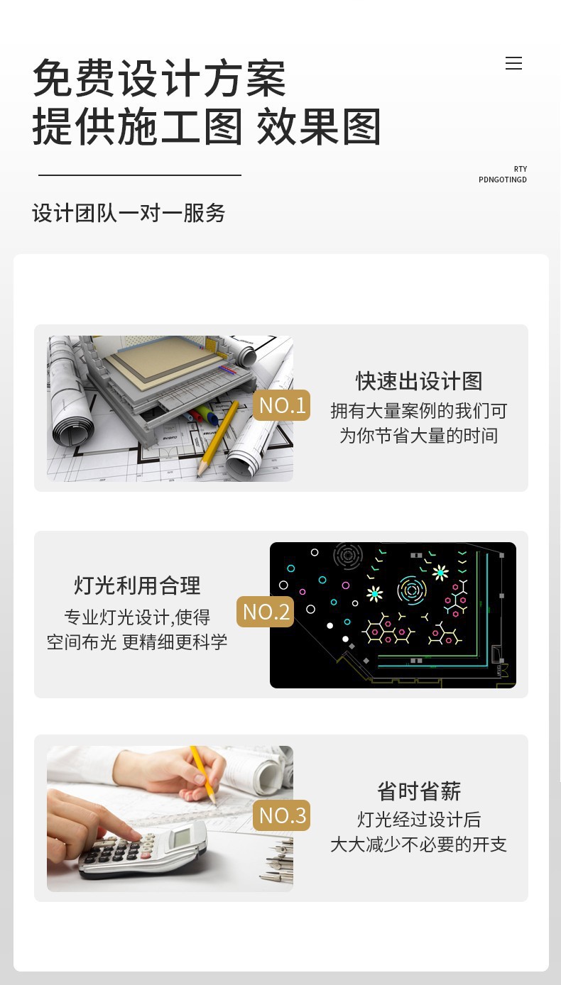 • 适用空间 家居、商业、工业、酒店、餐馆、店铺、办公、商超、图书馆、学校、医院、舞台、展陈、古建、园林、广场、公共